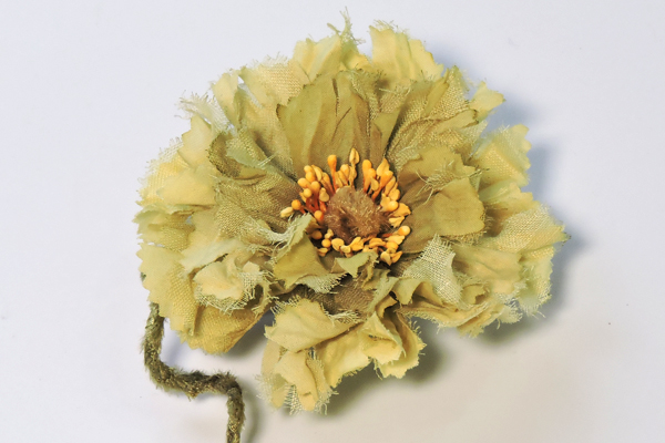 創作布花は、花のイメージに合わせての布選び、裁断、色染め後、加熱したり捻じったりして、花びら一枚一枚を手作りします。コサージュづくり等が体験できます。