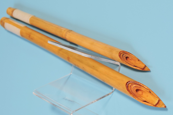 葦ペンは、緑川沿いの水際に群生したイネ科の多年草「ヨシ」を使った筆ペンで、空洞の円柱を利用したペン先と柄を組み合わせます。くまもと工芸会館では、絵手紙などに活用できるよう考案されたこの葦ペンの体験もできます。