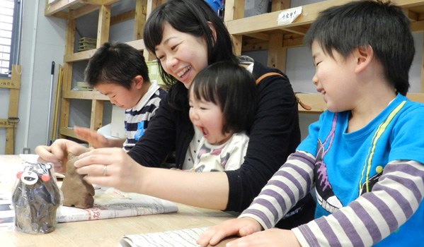 成形や絵付けなどの体験(有料)をすることも出来、会館に常設してある電気窯で素焼き、本焼きをすることもあります。