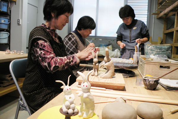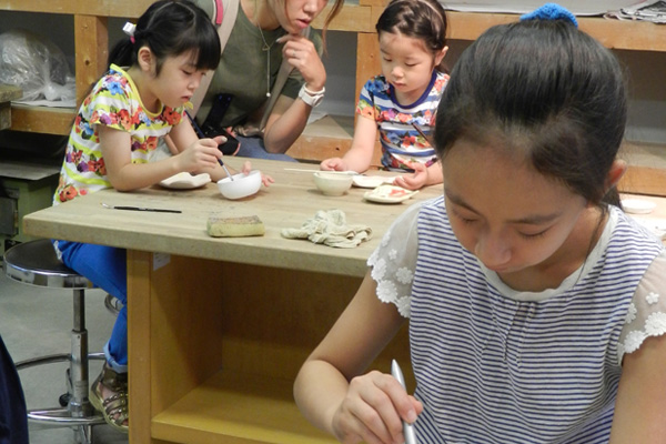 成形や絵付けなどの体験(有料)をすることも出来、会館に常設してある電気窯で素焼き、本焼きをすることもあります。